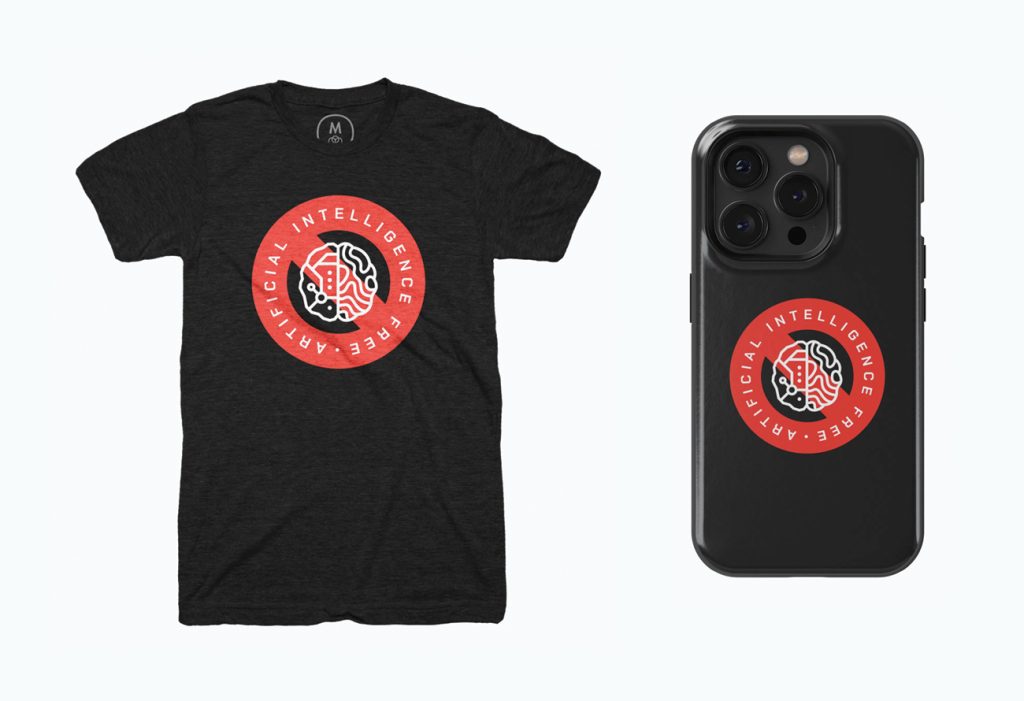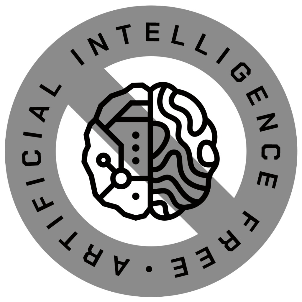 Newly updated for 2024, this badge is a free-to-use asset for anyone wishing to declare their independence from large-language models, generative ai, and other so-called artificial intelligence technology claiming to make our lives easier, while simultaneously eroding our ability to think and create for ourselves.